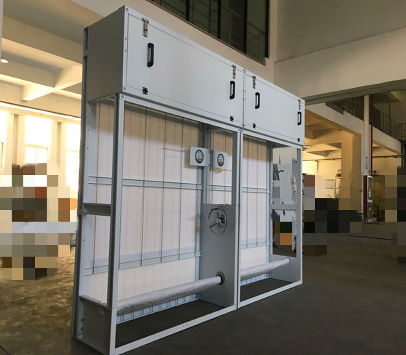 自动卷绕式过滤器设备尺寸:1150W*1800H,控制系统:西门子PLC自动和手动控制更换滤料,电机:卷绕过滤器专用减速一体电机,滤料:卷绕式过滤器专用G3滤棉,配套防雨百叶、安装固定辅件等。